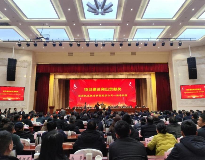 2月21日上午,宁乡市灰汤镇推动高质量发展大会暨2025年度经济工作大会在灰汤国网电力党校隆重召开。灰管局党组书记、灰汤镇党委书记黄果主持会议并讲话。灰汤镇全体机关干职工、相关部门单位负责人、驻镇企业、常驻镇上级党代表、常驻镇上级人大代表/政协委员、全体村干部、全体驻村第一书记、工作人员及相关获奖人员、媒体记者出席会议。我校董事长何凯作为受表彰企业代表参加会议并领奖发言。湘华学校灰汤新校区项目荣获“项目建设突出贡献奖”。